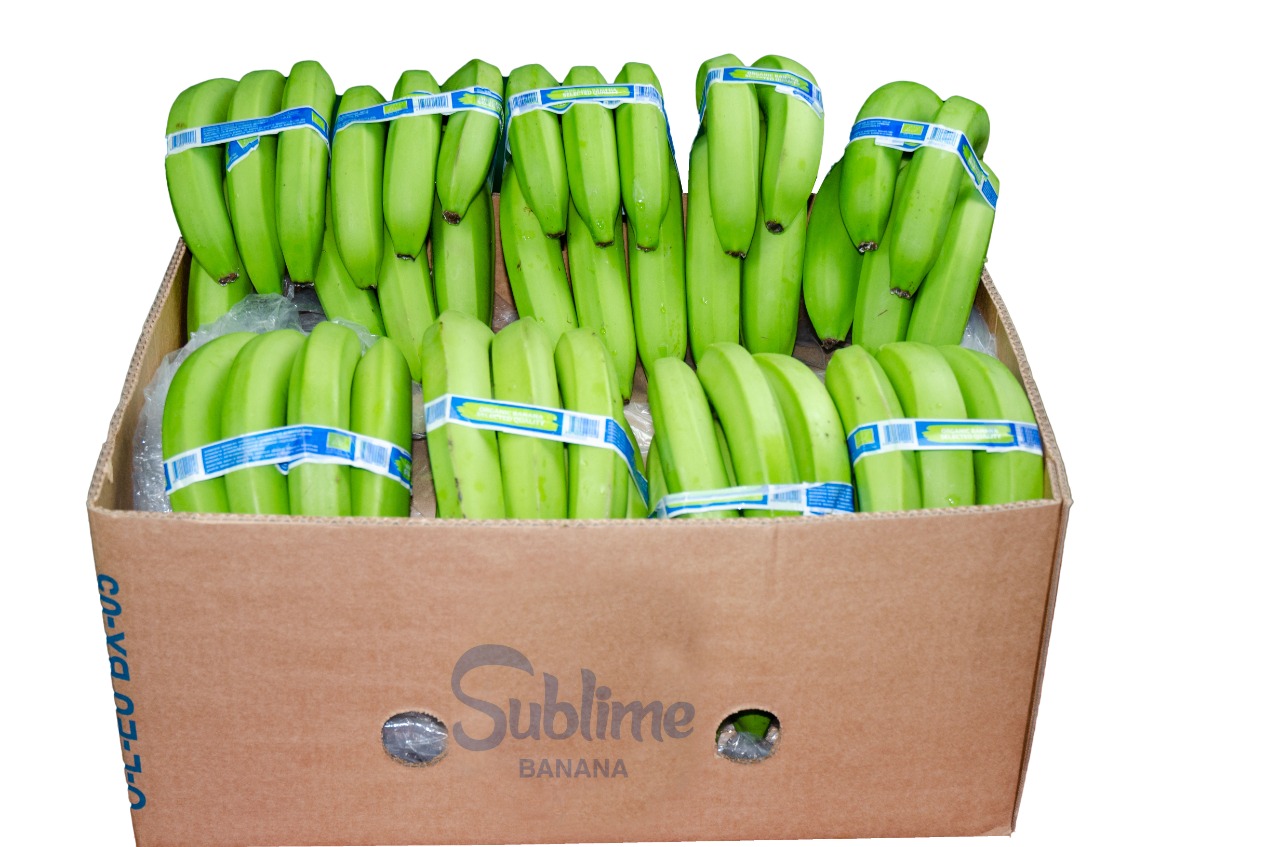 Las bananas son empacadas normalmente en cajas de cartón 22XU de 18kg. Los materiales varían en base a la necesidad del cliente.